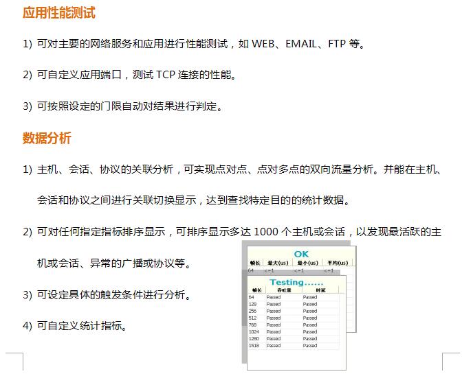 作为一款综合型的网络分析测试工具,GT- 3300 既可以执行诸多性能测试任务,又可以通过在线监测的方式分析网络流量,满足了网络维护人员在电路开通、日常维护、故障排查等 不同阶段的测试需求。