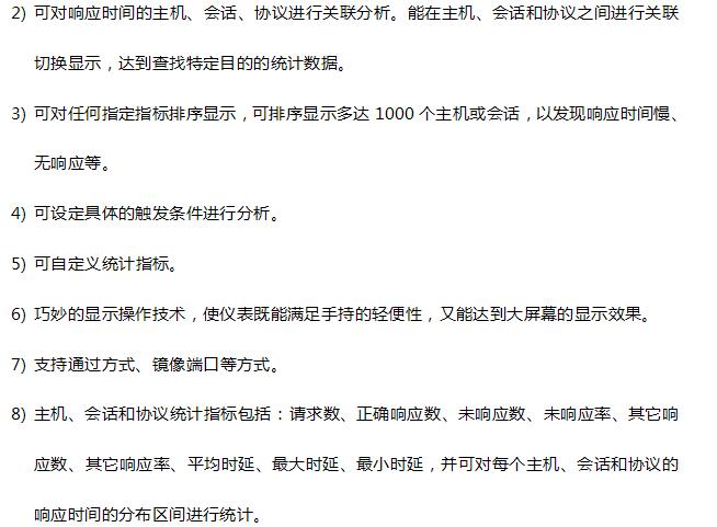 GT- 3300 可以通过连接至交换机镜像端口、TAP设备、通过模式等多种方式,实现对网络流量的实时监测和统计。测试过程中,GT- 3300 对监测流量中的主机、会话、协议、VLAN 等进行独立统计和关联分析,并结合自定义的触发条件、过滤器、统计方式,快速的呈现用户最关心的分析数据。例如,占用带宽最大的主机或会话( 异常下载或占用入发送广播最多或最快的主机( 可能中了病毒) CRC 错误最多的主机(线缆或网卡故障),等等。