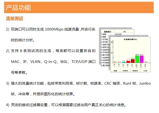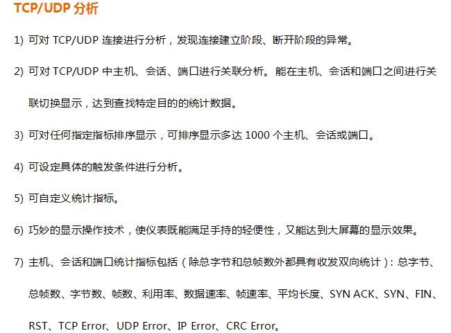 GT- 3300 是一款手持式以太网分析仪,不但具有网络性能测试、服务性能测试以及多种网络诊断等测试功能,同时具有以太网在线业务实时分析能力,包括数据分析、响应时延分析、TCP/UDP业务分析、VLAN 分析,网络分析等分析功能。