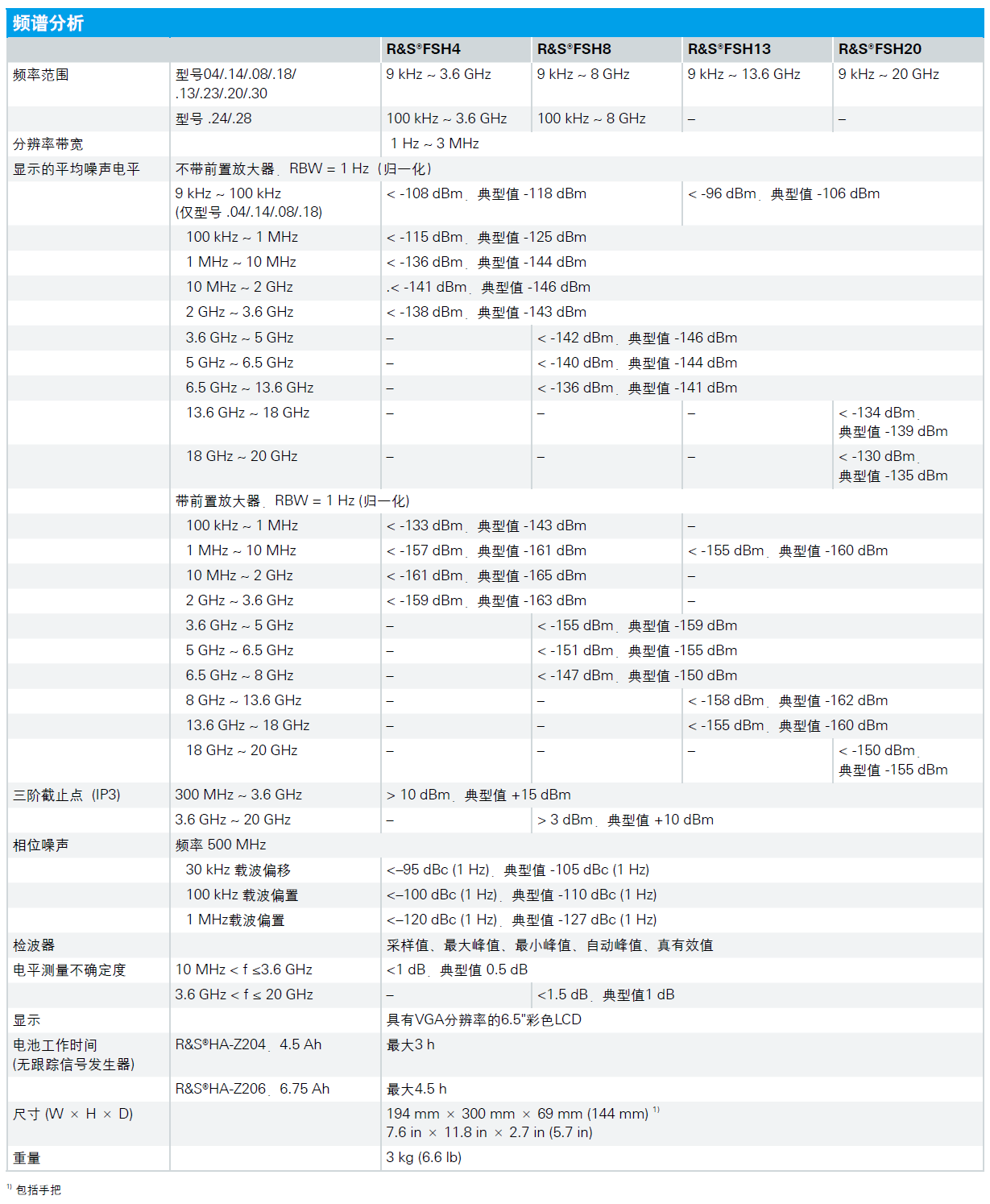 R&S®FSH频谱分析仪结构坚固,携带方便,适合在工作现场使用。它的设计独特,重量较轻,操作十分简便,具有众多测量功能,是室外工作人员必不可少的、有效的测量工具。